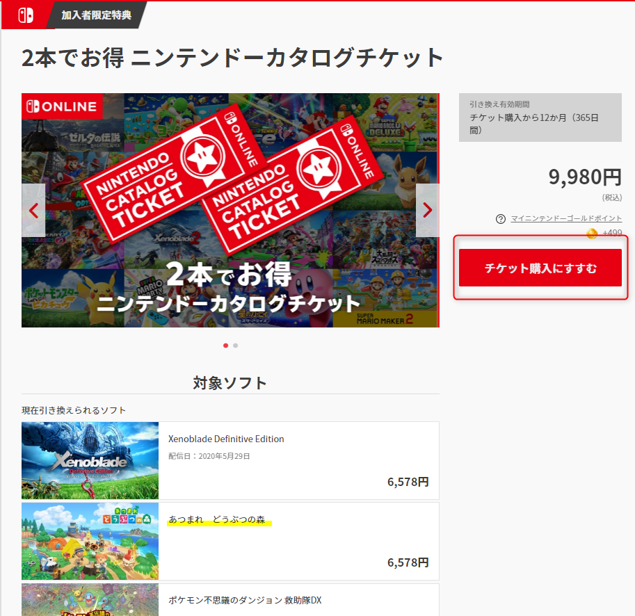 ニンテンドーカタログチケットを使う条件